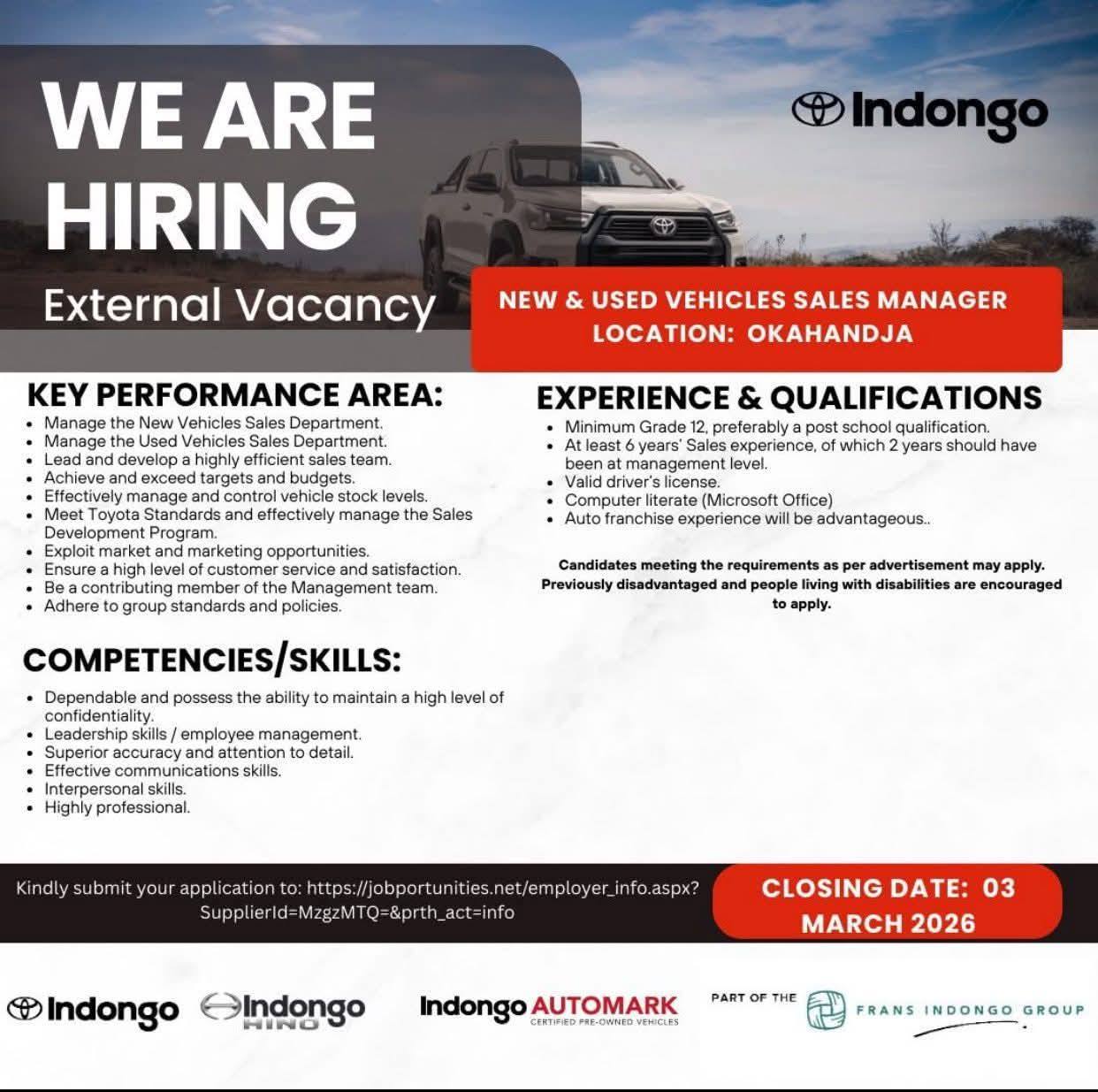 Explore the Latest Indongo Motors Vacancies now available on the @www.indongomotorsgroup.com Career Portal and take the next step toward your dream job!