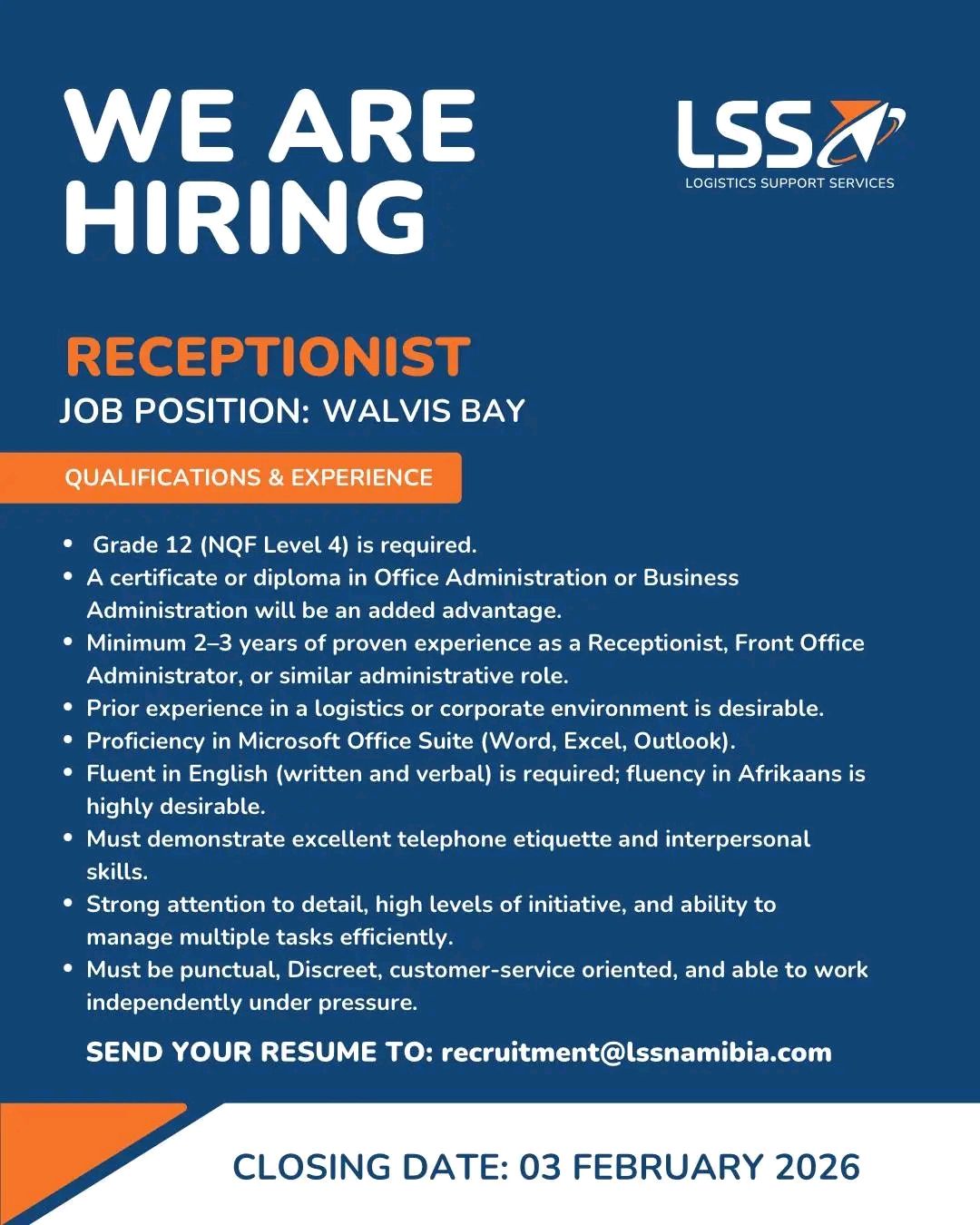 Unlock exciting career opportunities with the latest Logistics Support Services Vacancies for 2026! Visit the @www.lssnamibia.com vacancies Portal to apply for Receptionist and diverse other roles. Begin your journey toward career growth in Namibia!