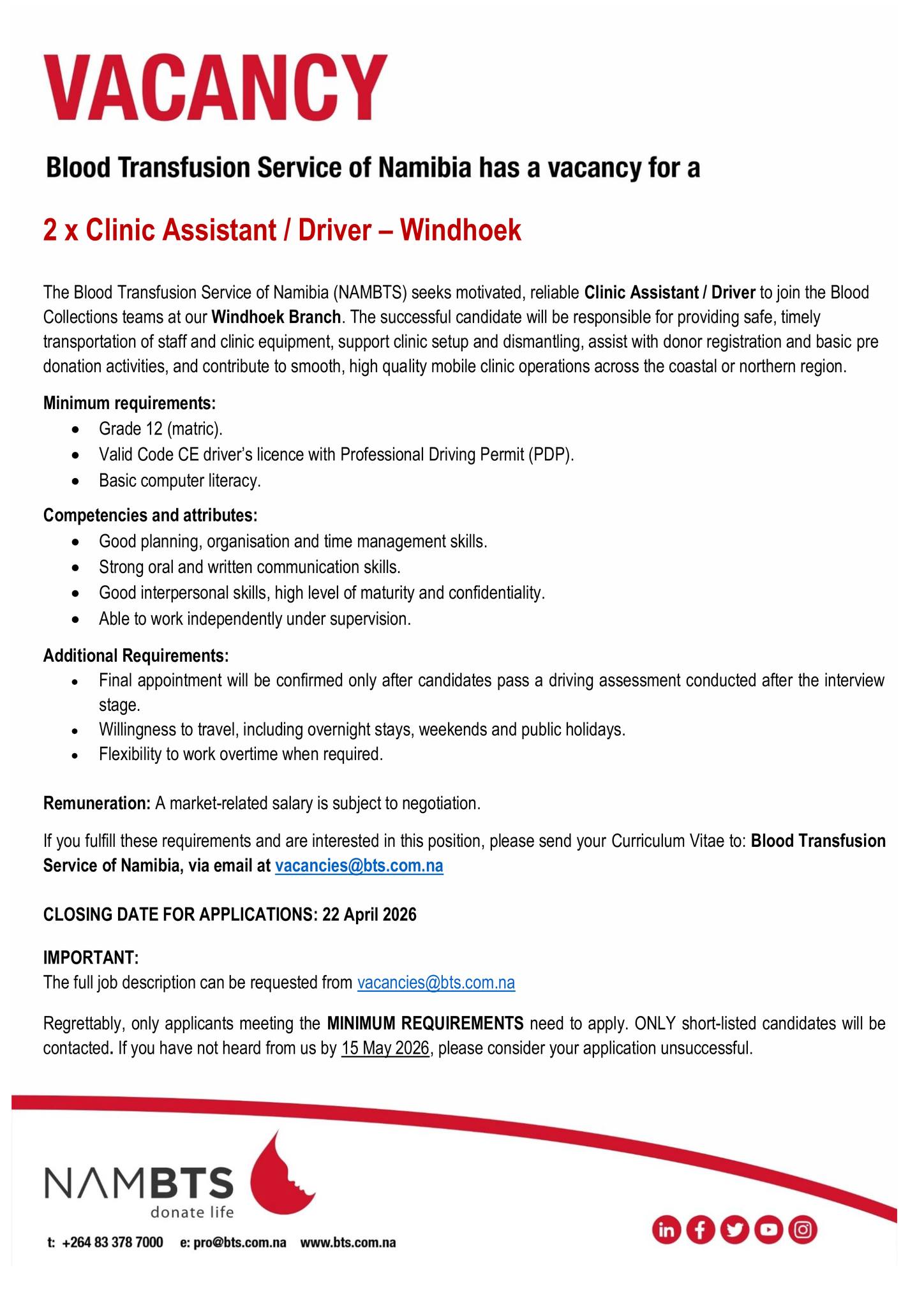 Location:- Windhoek, Khomas, Namibia      Apply By:- 22 April 2026