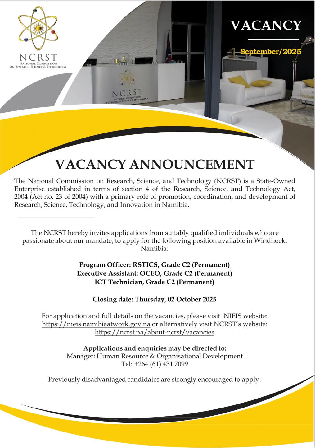 Explore the Latest NCRST Vacancies now available on the @www.ncrst.na Career Portal and take the next step toward your dream job!