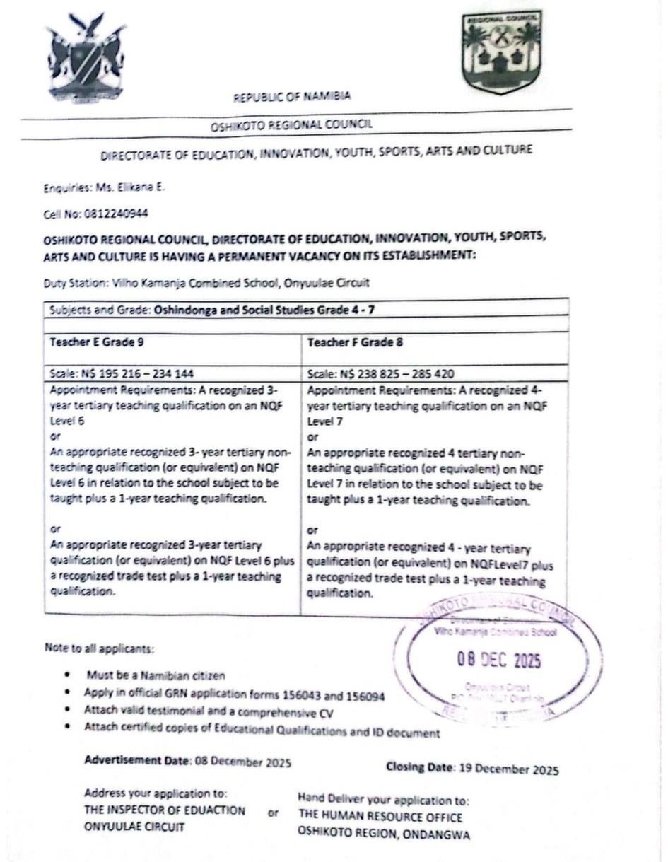 Unlock exciting career opportunities with the latest Oshikoto Regional Council Vacancies for 2026! Visit the @oshikotorc.gov.na vacancies Portal to apply for Teacher and diverse other roles. Begin your journey toward career growth in Namibia!