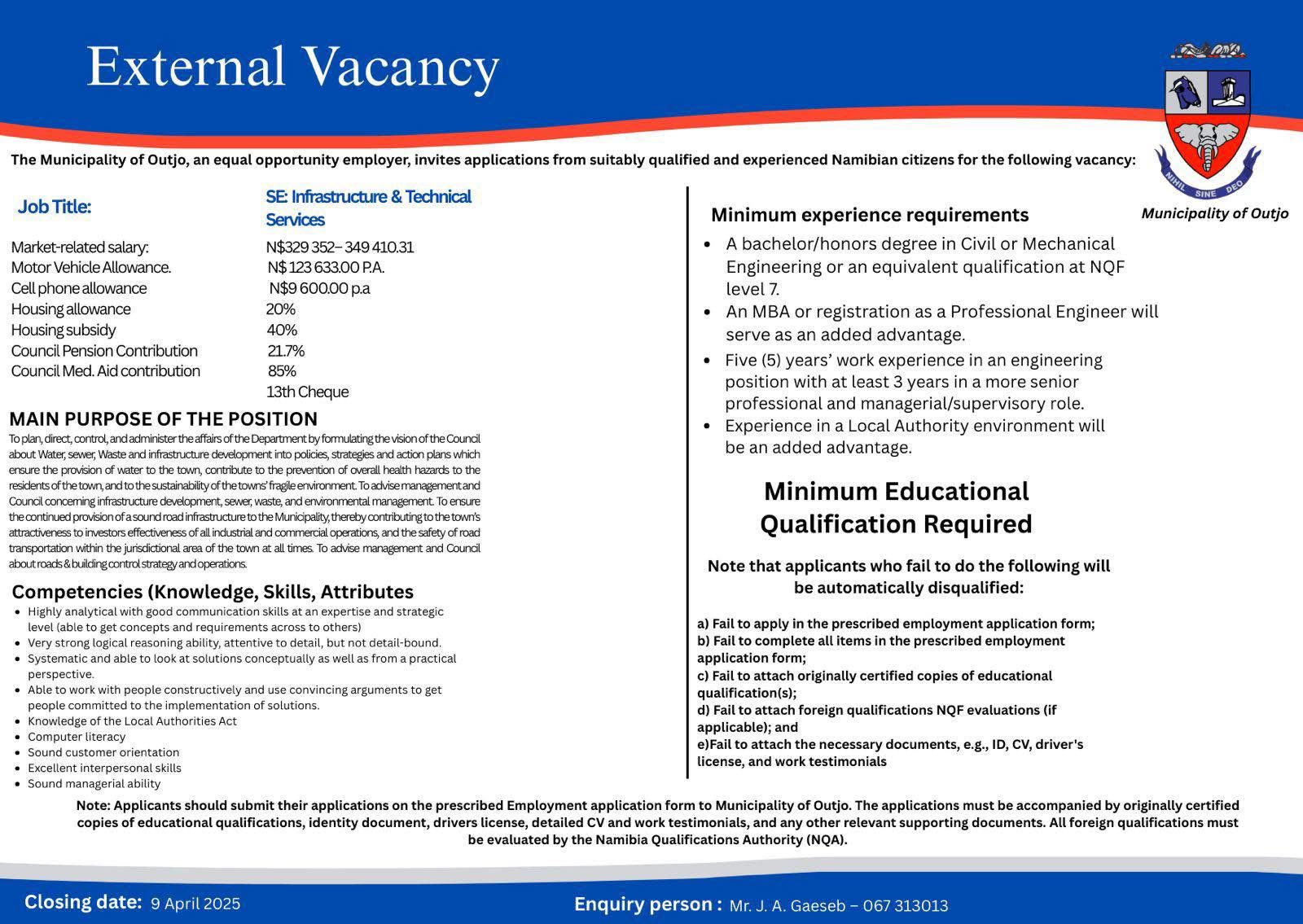 Location:- Outjo, Kunene, Namibia Apply By:- 09 April 2026 |