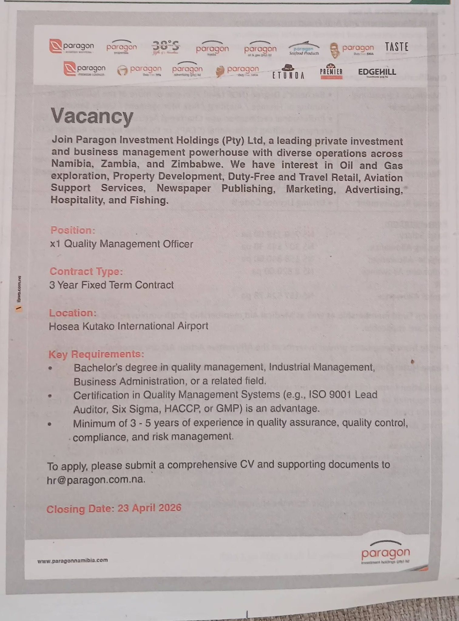 Explore the Latest Paragon Namibia Vacancies now available on the @www.paragonnamibia.com Career Portal and take the next step toward your dream job!