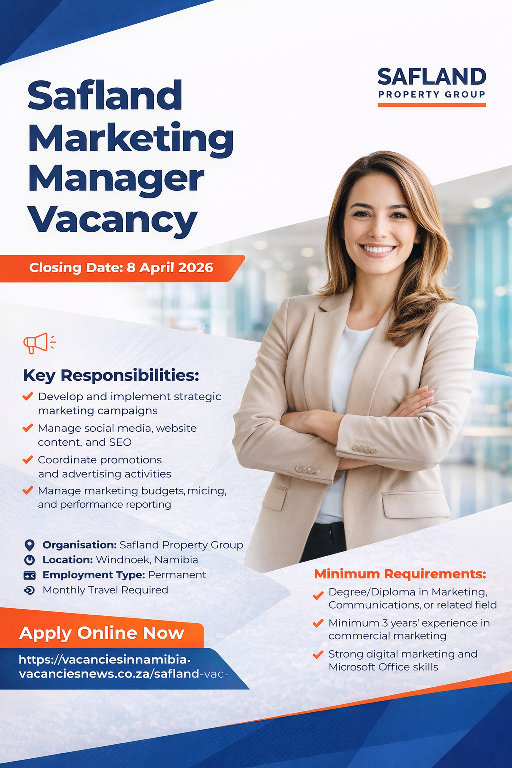 Unlock exciting career opportunities with the latest Safland Vacancies for 2026! Visit the @safland.com vacancies Portal to apply for Marketing Manager and diverse other roles. Begin your journey toward career growth in Namibia!