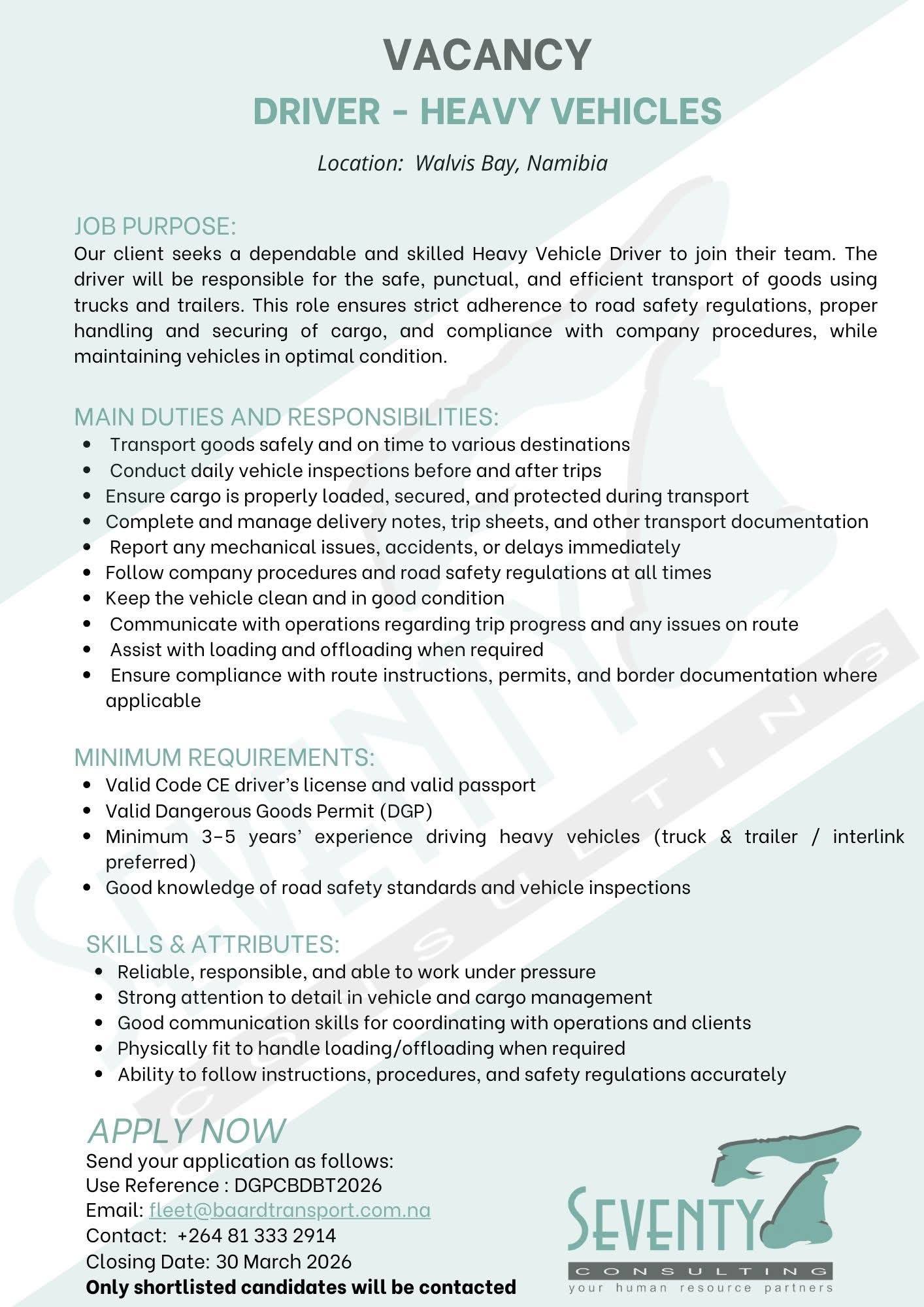 ToggleUnlock exciting career opportunities with the latest Seventy7 Consulting Vacancies for 2026! Visit the @seventy7consulting.com vacancies Portal to apply for Driver and diverse other roles. Begin your journey toward career growth in Namibia!