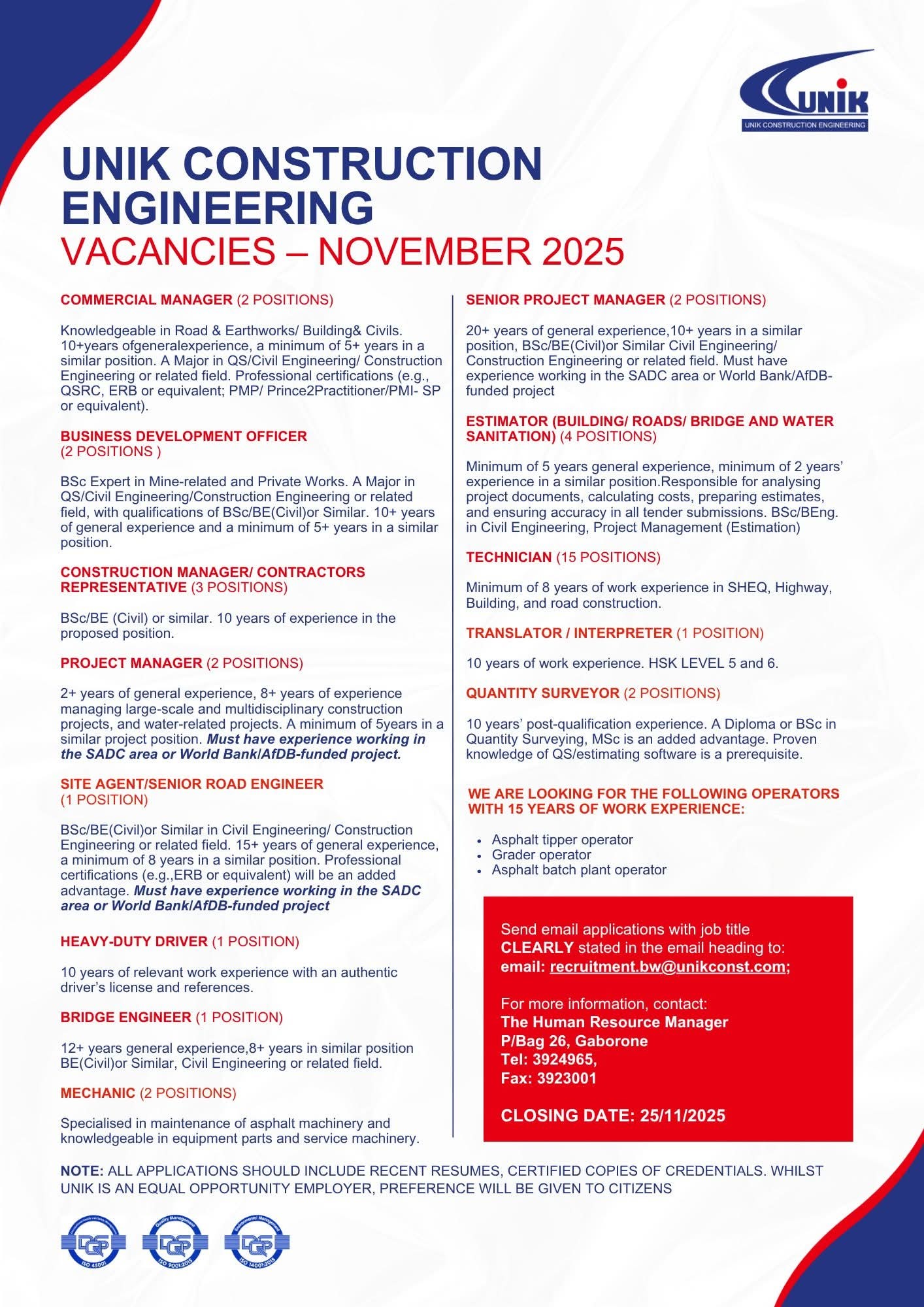 Explore the Latest Unik Vacancies now available on the @www.unikconst.com Career Portal and take the next step toward your dream job!